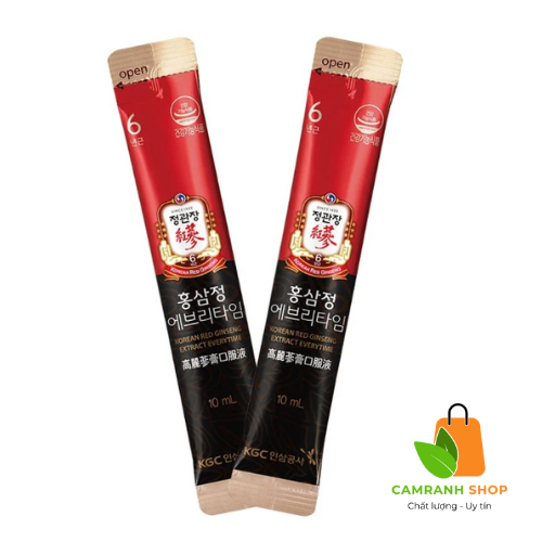 Chỉ với 1 gói mỗi ngày, bạn có thể cảm nhận được cơ thể khỏe hẳn, trí nhớ tăng cường, tăng mức độ tập trung, cơ thể tràn trề năng lượng, người ốm nhanh hồi phục. Đó là những hiệu quả mà sản phẩm Tinh chất Hồng Sâm KGC Cheong Kwan Chang Everytime Original mang lại cho bạn. Là sản phẩm tiêu biểu của Cheong Kwan Jang, được đóng gói dưới dạng stick dễ sử dụng và thuận tiện mang theo mọi lúc mọi nơi.